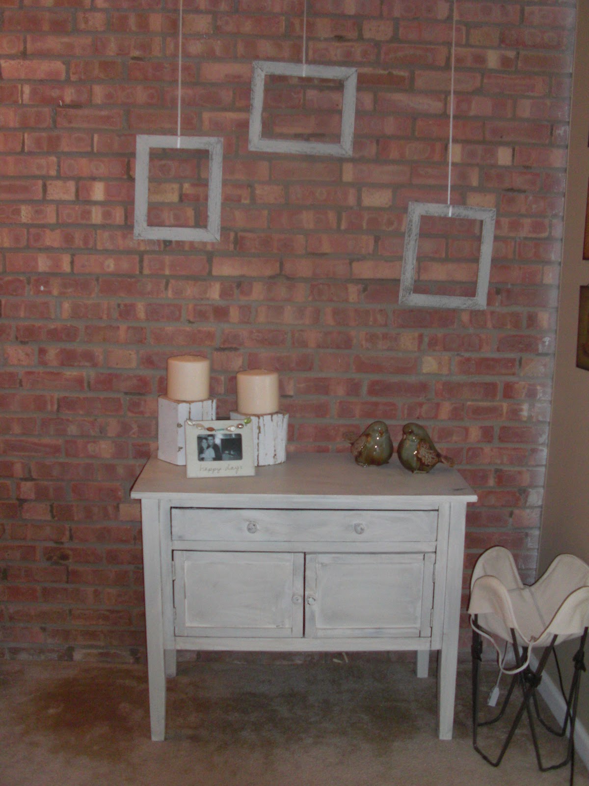 I also gave those old barn-wood frames the same treatment and hung them on removable hooks, since I had liked that look so much with the wreathes at Christmastime. :)